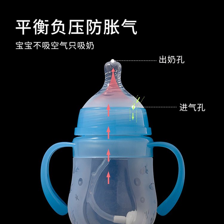 • 5cm寬口徑pp硅膠奶瓶 新生嬰兒帶手柄防脹氣